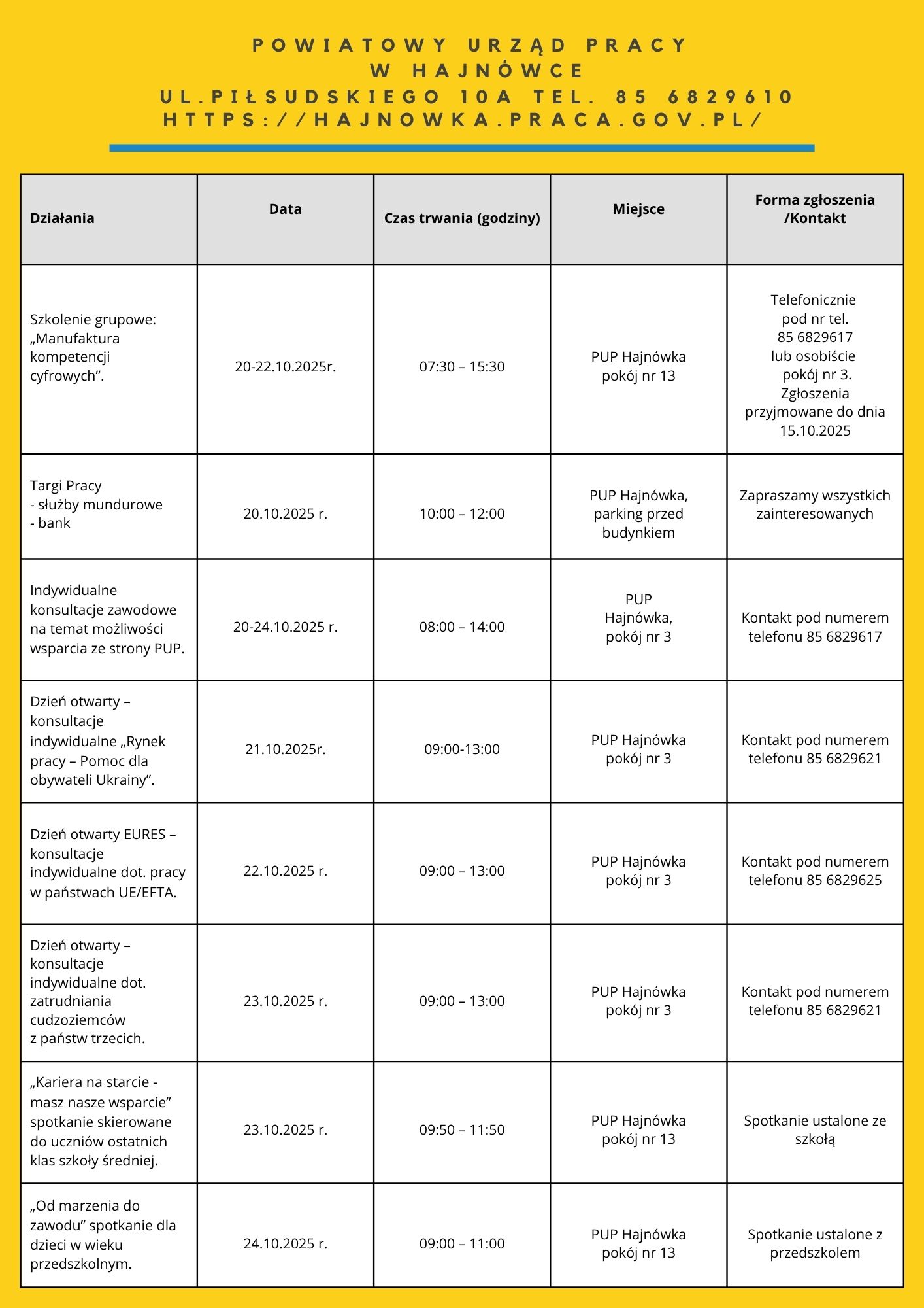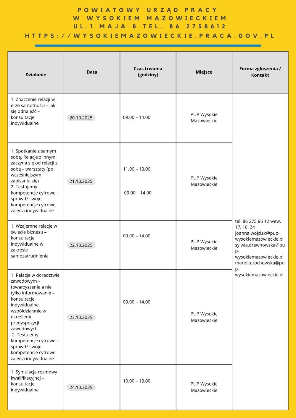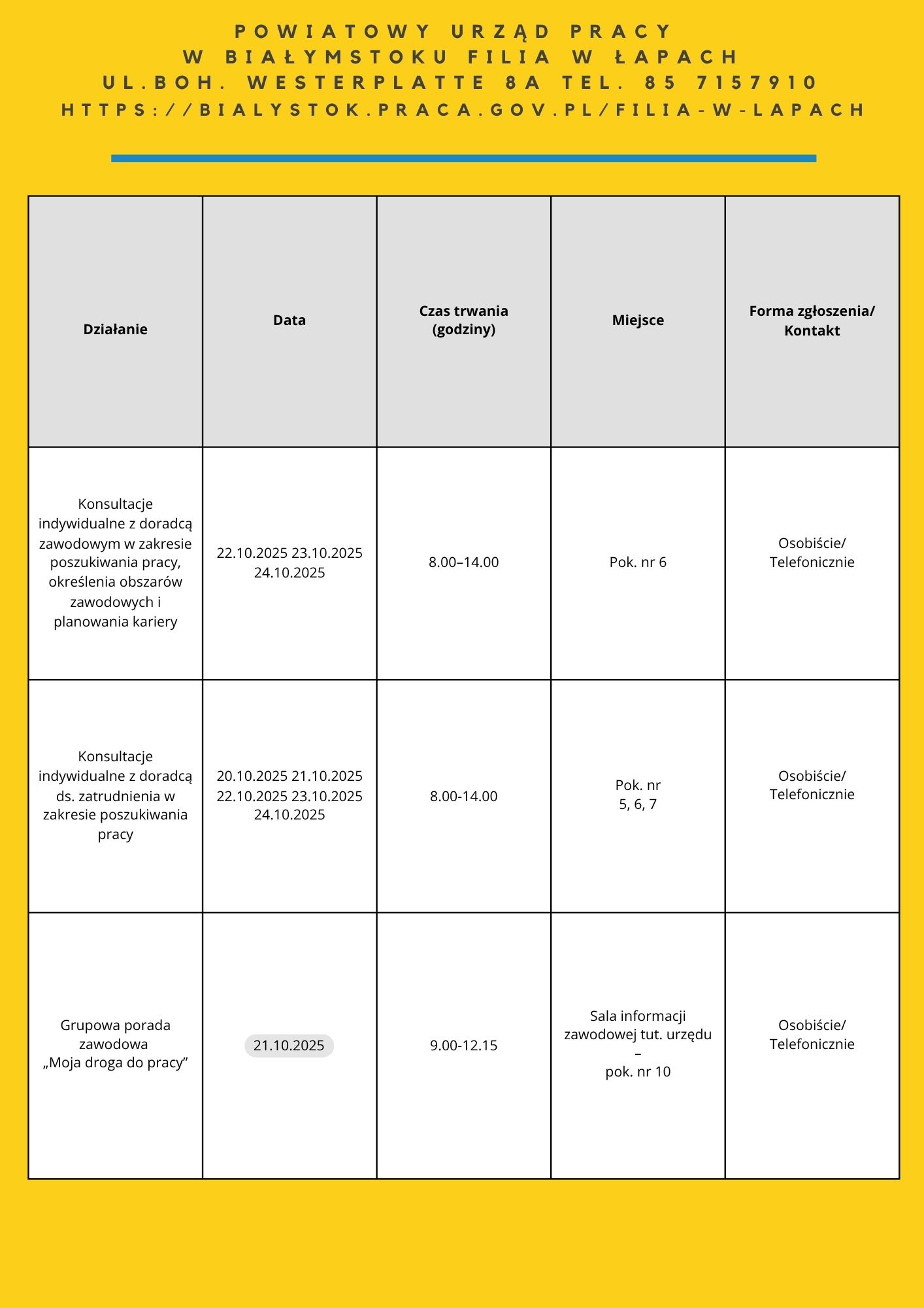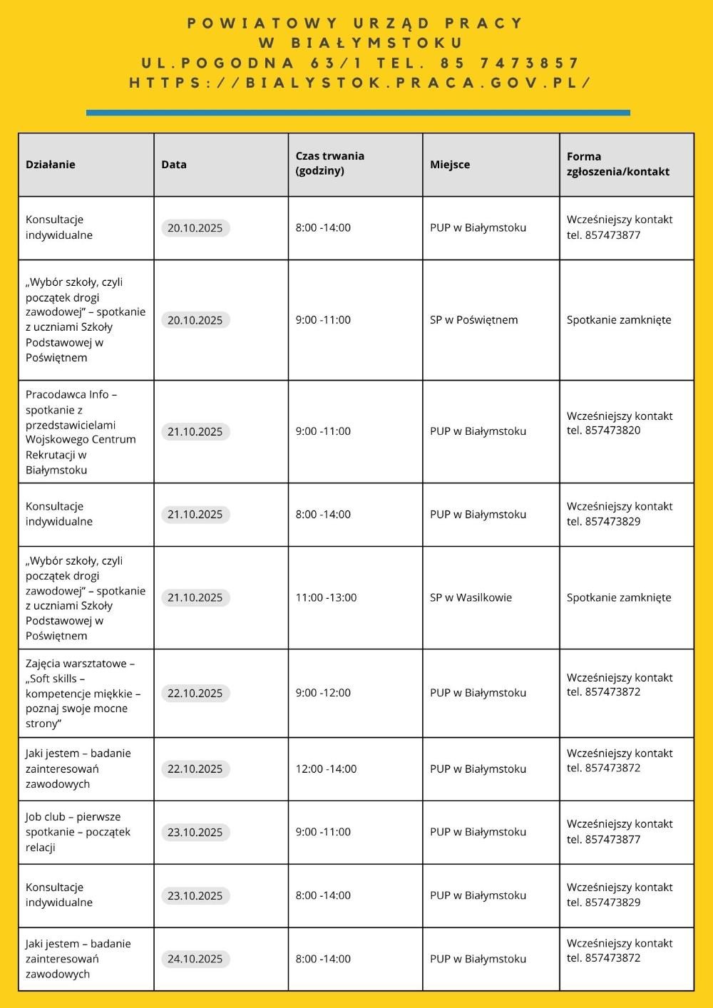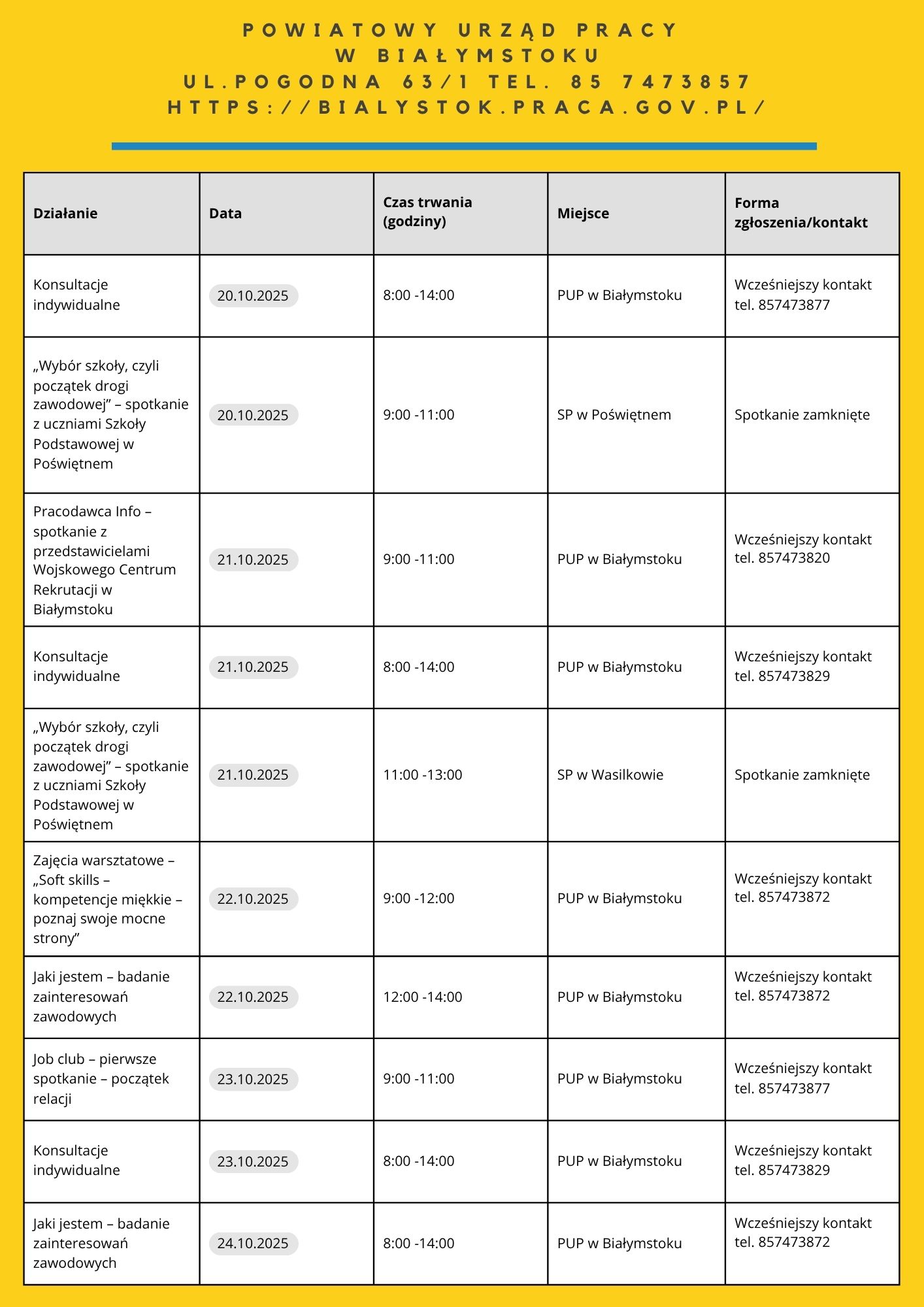 • „Moja droga do pracy” – 21.10.2025 – 7 os. – PUP Filia w Łapach