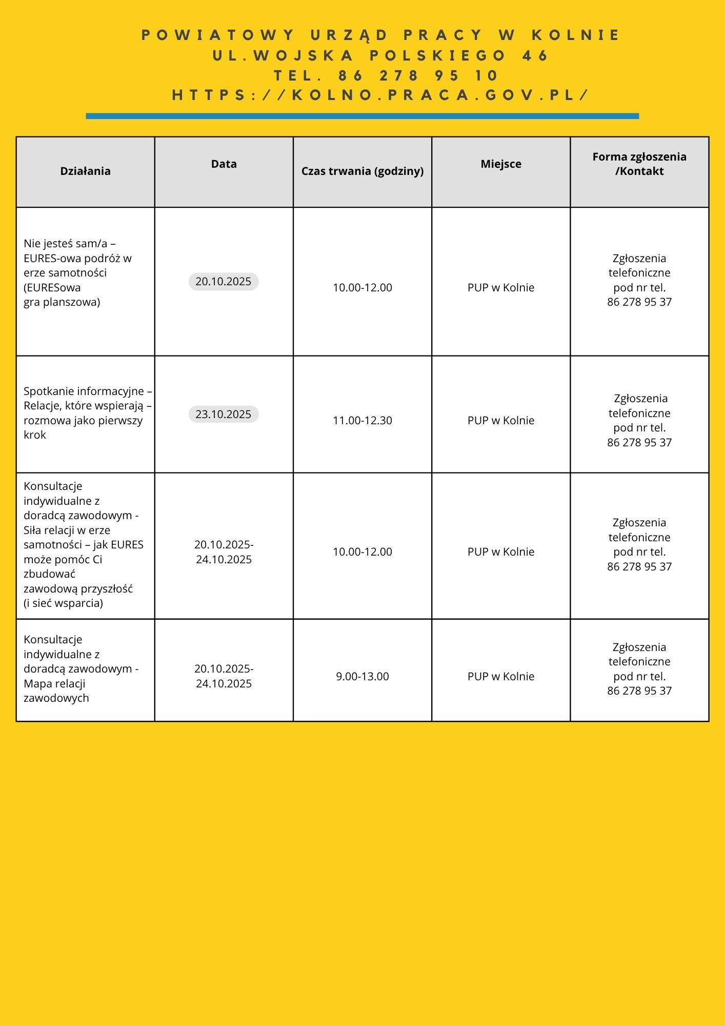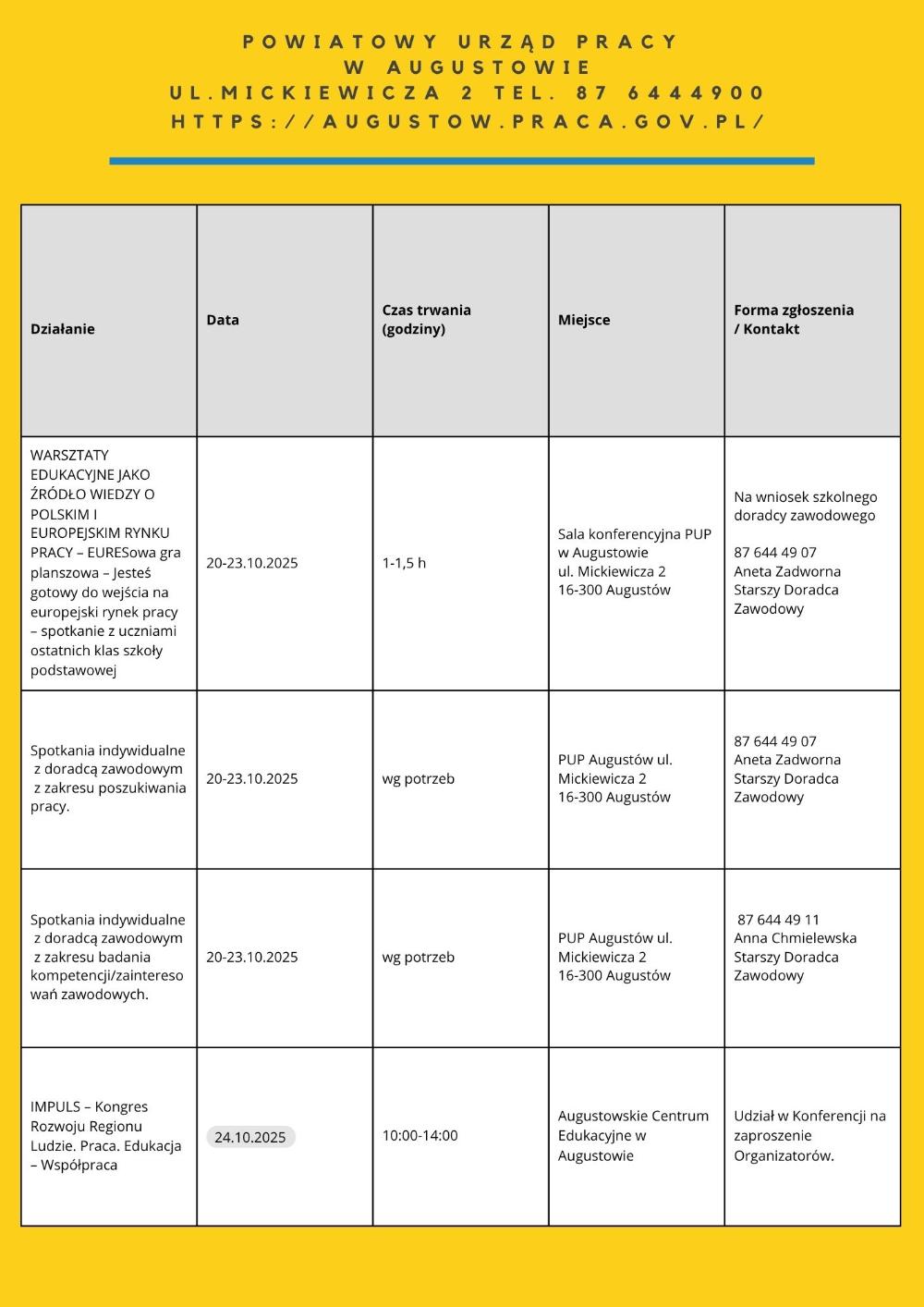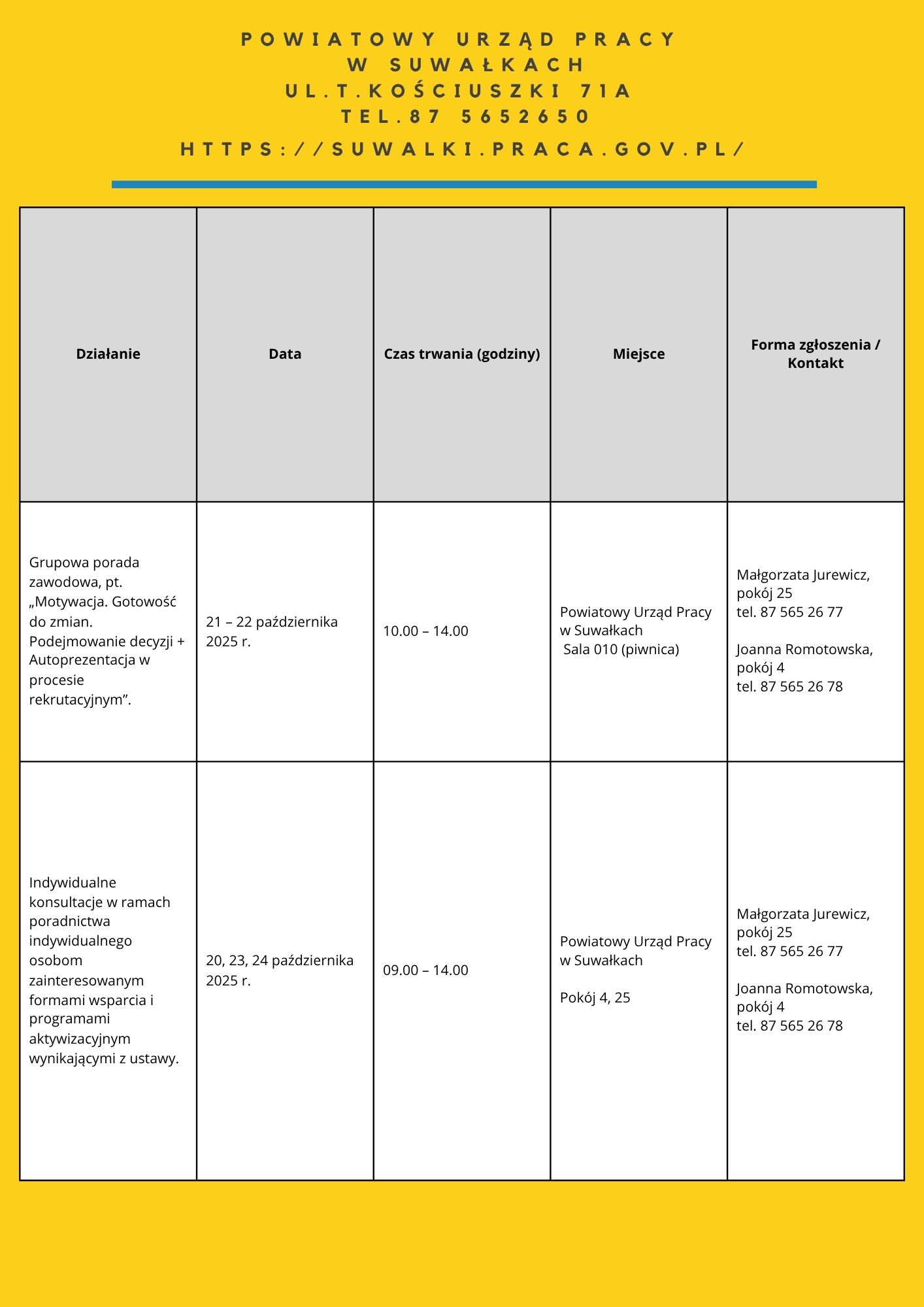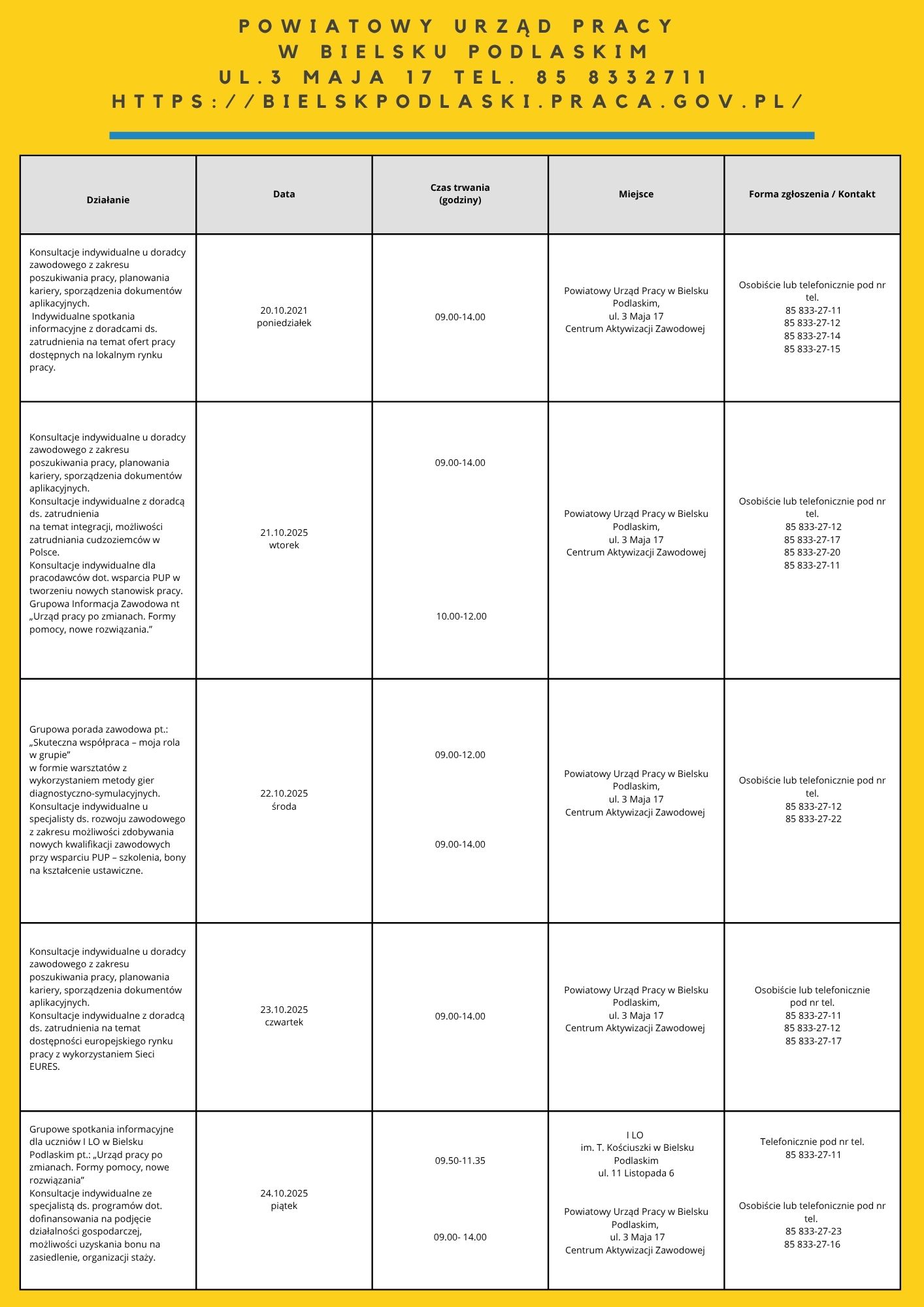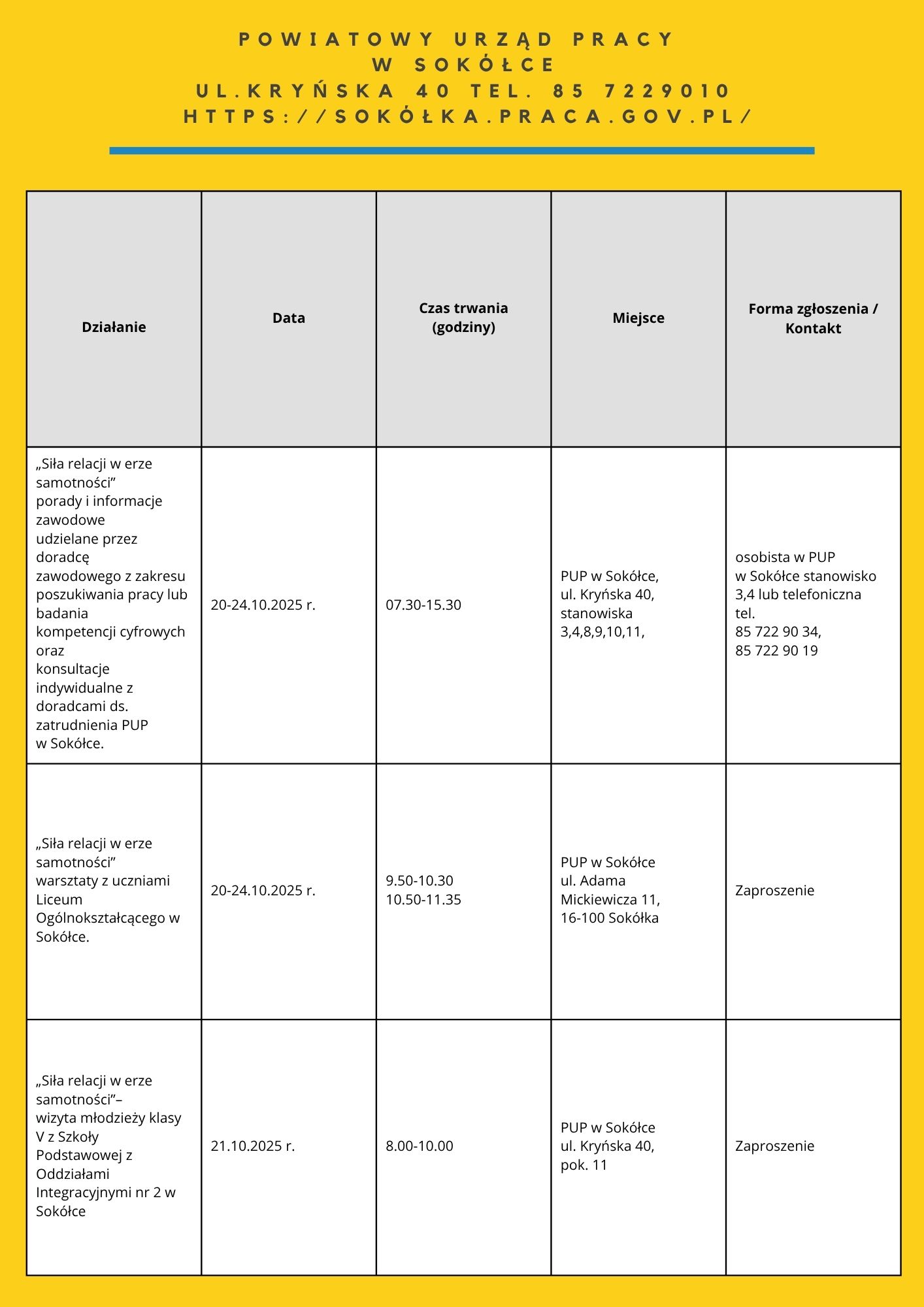 • „Moja droga do pracy” – 21.10.2025 – 7 os. – PUP Filia w Łapach
